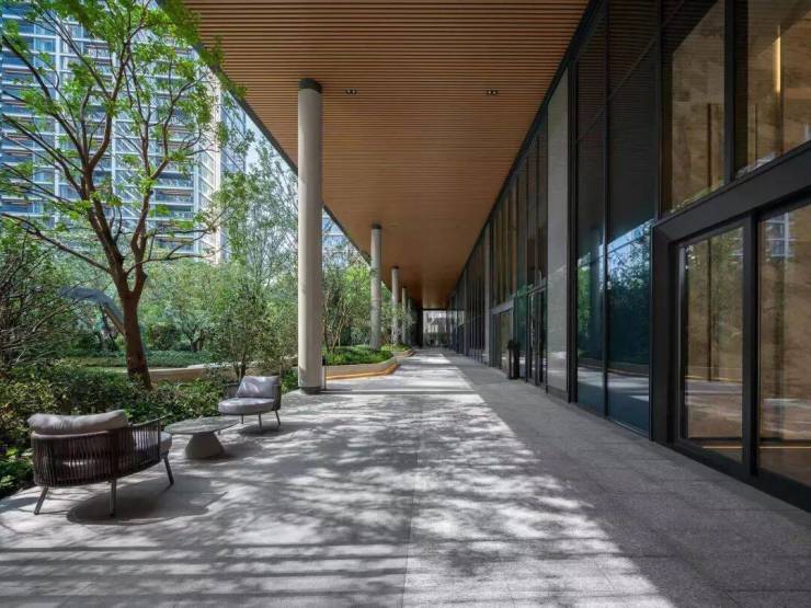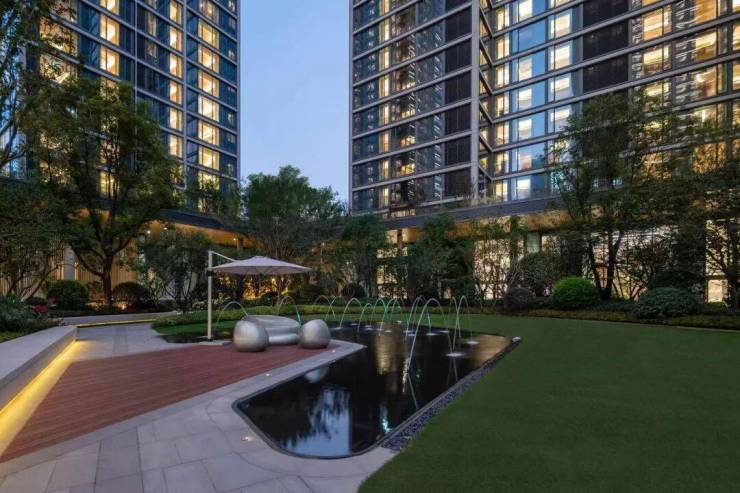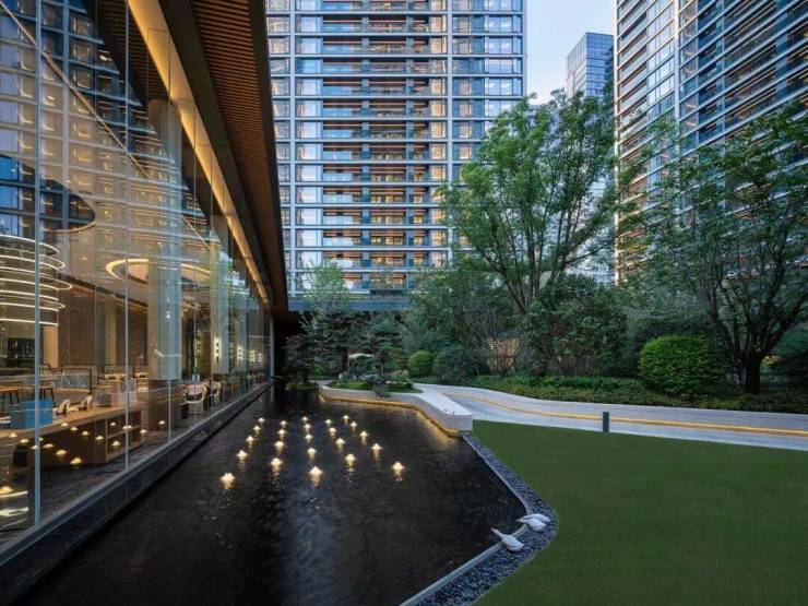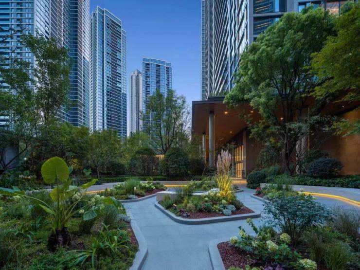 景观则为现代都市度假风格配套,园区绿意与建筑的完美配合,减弱超高层建筑的压迫感,增加园区使用的舒适度,达到居则悦的品质、归则隐的自然,给予客户极致的居住体验。