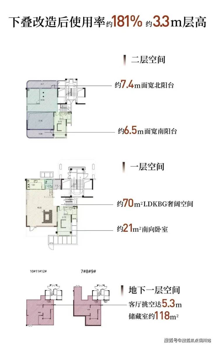 同时,下叠装修改造后综合使用率可达约181%,其中地下生活室,后期可打造为酒窖、收藏室或私人工作室;阳台空间,可承载家庭多元志趣,方寸之间转化为可生长的生活容器。