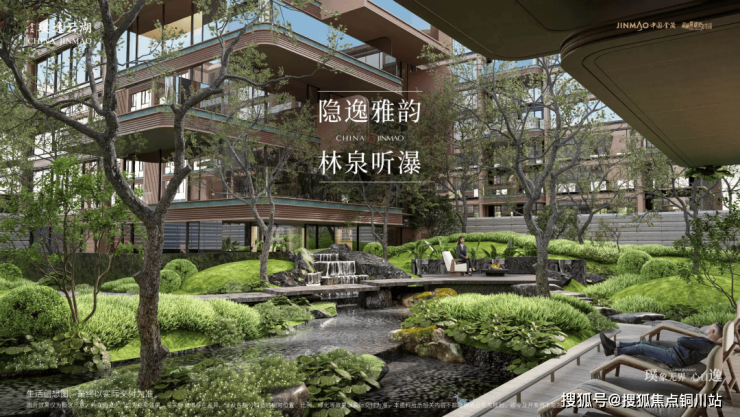 项目设计灵感源自唐代卢鸿的《嵩山十志》,以“天地一体”为哲学基底,构建“一轴十境”的园林体系。gad张微在建筑设计中提出“悬山冠顶、流线型隐逸飞檐”的概念,打破传统建筑的平直线条,形成如书法般行云流水的动态美感;奥雅柏世航则将《嵩山十志》中的“倒景台”“聚宝盆”等十景转化为景观节点,通过“望山檐、铜樽照壁、倒景台”三段式门堂,暗合卢鸿诗中“穷三休兮旷一观”的意境;HWCD解湘玉在室内设计中以“现代东方”为基调,通过胡桃木、丝绸墙布与抽象水墨画的组合,传递“少即是多”的奢华感。