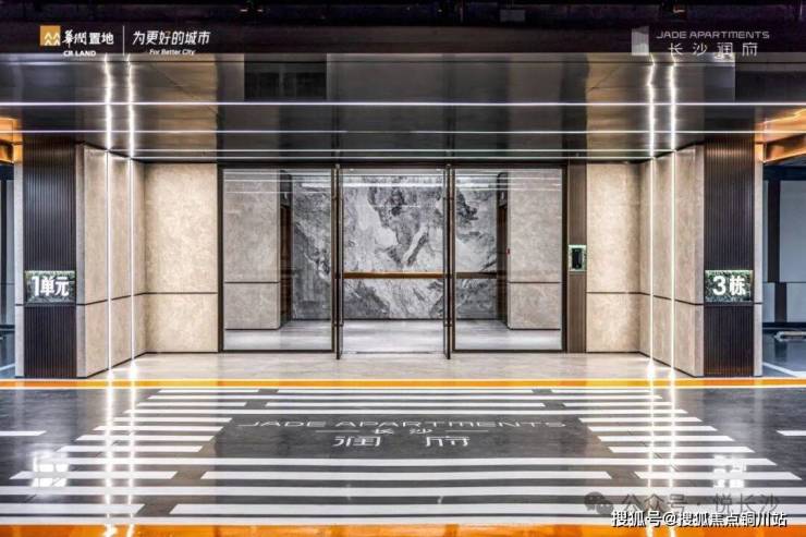 地下车库也已实景兑现,单元入口处采用局部格栅吊顶,立柱金属线条包装,指示标识系统随处可见,大气、沉稳。