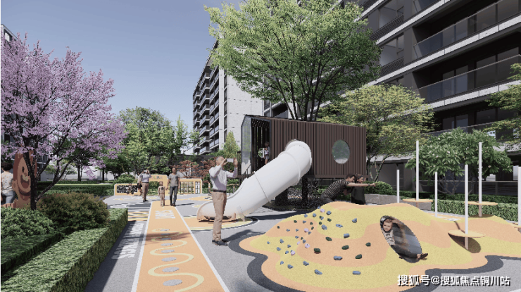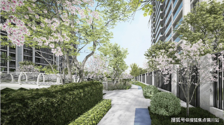 而与城市共生的公共空间,亦是“与生活共美”的显性表达。项目采用“一轴两环两心十花园”的复合型造景,承载了“幸福宅园空间 ”、“社区暖心空间”、“沉浸情绪体验”等功能,也在无形中打通了人与自然、人与建筑之间的交流通道。
