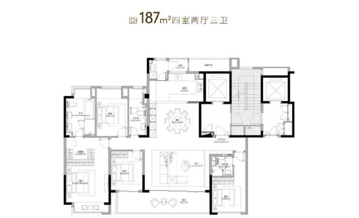 以建面约187㎡户型为例,玖映蠡湖真正做到了尺度感、舒适度、功能性的结合,概括起来就是满足了【生活三感】,是真正意义上的“实用型奢宅”。