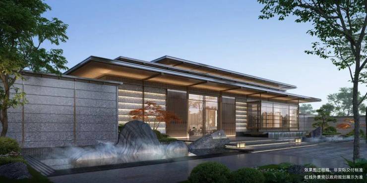 ◆二进|登门望府 :以画景还原的方式,打造飘逸巍峨的“三重檐”,结合七开间秩序的建筑手法,还原传统中式大门的礼序考究。