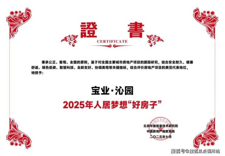 中指研究院于5月初启动2025年人居梦想“好房子”研究与优选工作,通过专家评审与网络票选相结合的方式,以“健康宜居、全龄友好、绿色低碳、科技智能、安全耐久、协调美观”等六大评判体系为评判标准,最终在全国范围内优选出宝业·沁园等『2025年人居梦想“好房子”』项目。