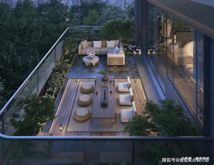 引入挑高露台设计,可同时容纳休闲区、绿化区、功能区的复合布局。部分户型采用了约270°环幕视野的设计,“大面宽阳台+挑高露台”打破了传统住宅的单面观景局限,可以尽可能的放大景观视野,让城市的万千气象以及社区园林的四季景观尽收眼底。