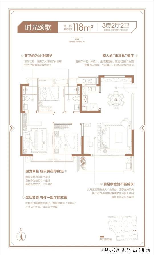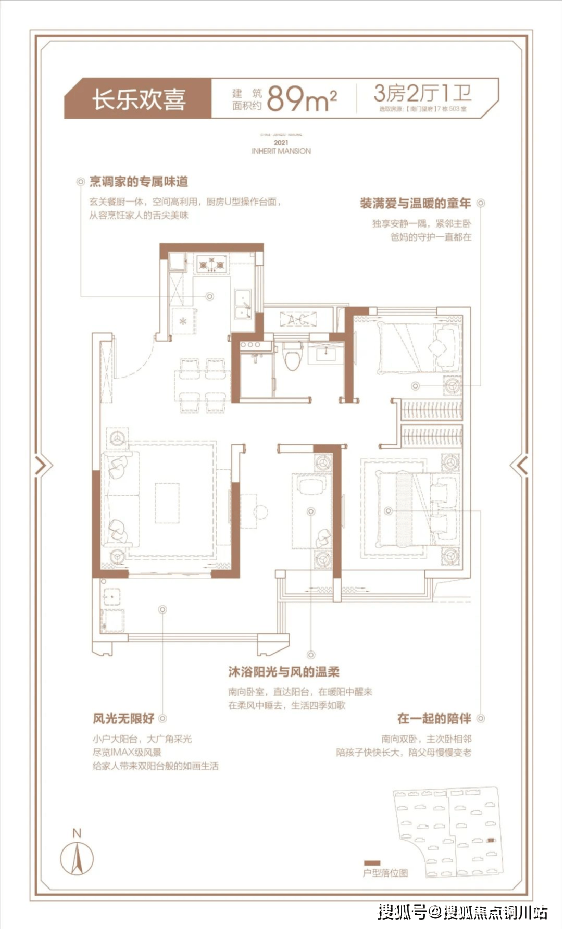 项目打造了建筑面积约89㎡、98㎡、118㎡、128㎡四种户型,三房起步,整体户型设计方正,南向大阳台设计,通透性强,每一种户型都可圈可点。