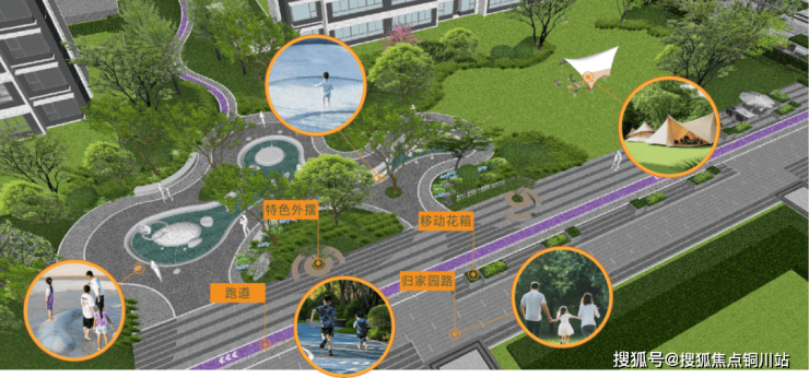 社区公区动线增加南北向步道,南北串联活动场域,业主遛弯串门更顺畅,出入便捷不再绕远路。