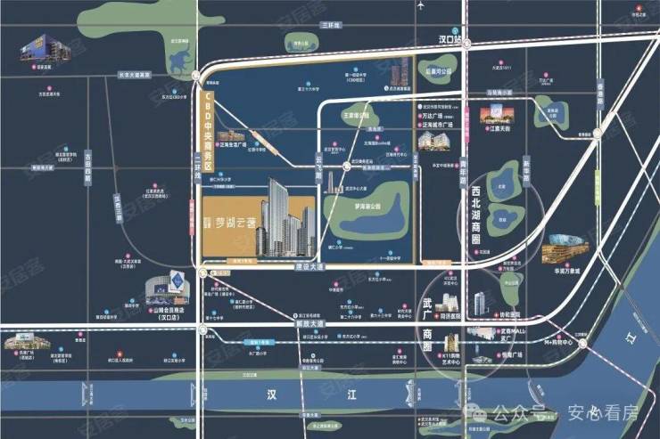 项目位于武汉CBD板块,在硚口区,建设大道与汉西路交汇处,属于二环内。