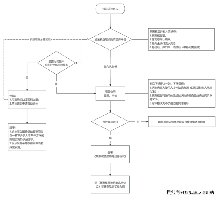 (三)权益证的权益人,商品房买卖认购书的买受人,以及商品房备案合同的买受人需一致。权益证可向相关镇街申请拆分或交易买卖以便用于权益证换购商品房。