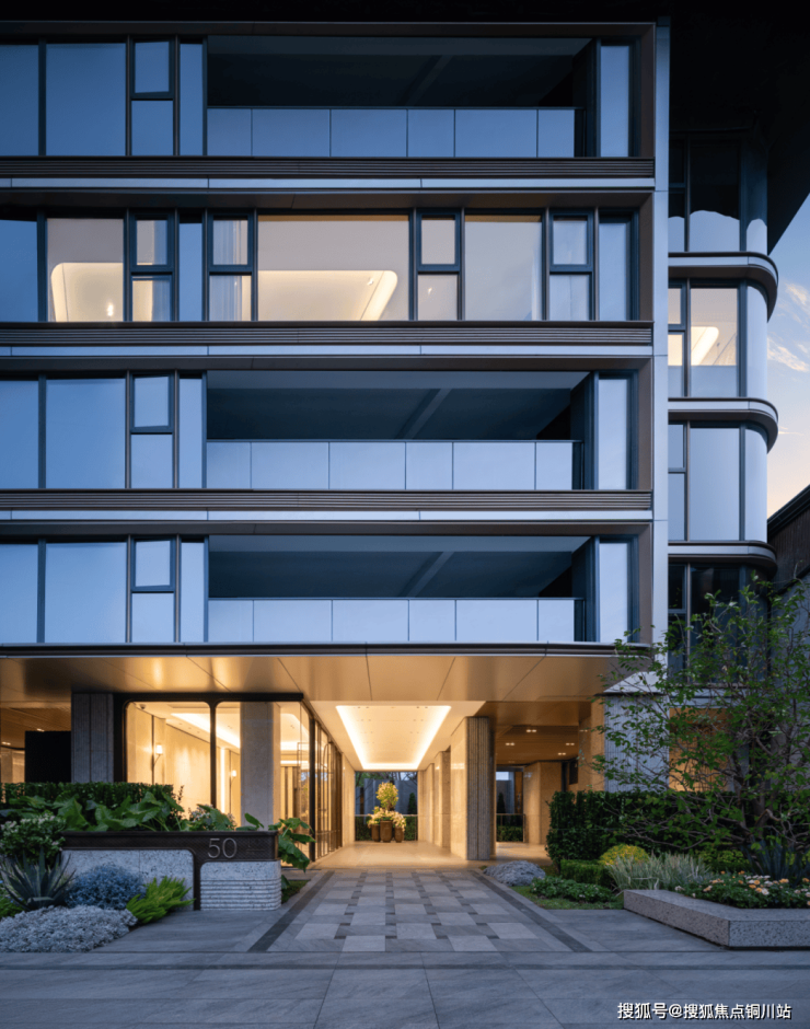 洋房建筑立面运用曲面屏结合高级灰玻璃,勾勒出如湖波流转的现代线条。超大玻璃幕墙占比,270°环幕视界,引景入室,南北立面均选用高品质蜂窝铝板,实现四面皆景,历久弥新。