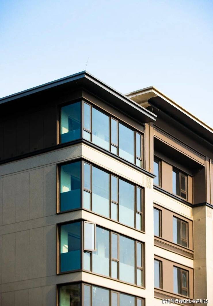 横向里高透光的落地玻璃大尺度铺开,顶部是褐色屋顶。