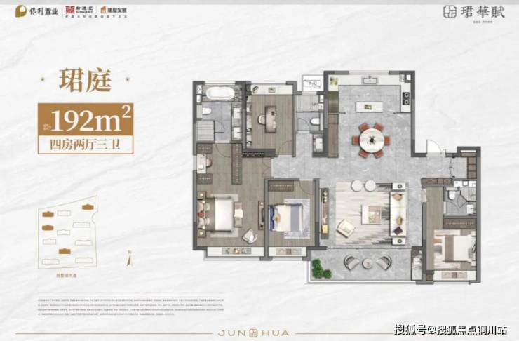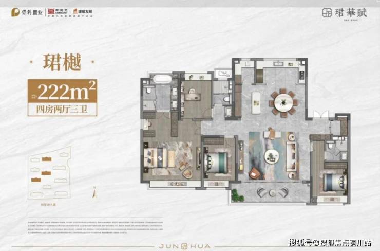:152㎡、156㎡、190㎡、222㎡(均为四房以上设计,主卧套房化)