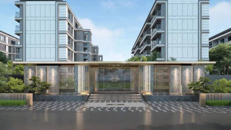 云山院融取宋式美学意境,将中国古建科学与艺术巅峰的宋式美学发挥得淋漓尽致。立面设计复刻宋冠翅帽檐、层级飞檐,沿袭宋徽宗瘦金书法风骨,呈现出独特的东方韵味。同时,融合现代玻璃幕墙,使建筑既具有古典的优雅,又不失现代的时尚感。会所以镜像玻璃幕墙 + 宋式双檐营式打造,尽显大气与奢华。