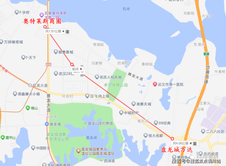 自驾:项目南临巨龙大道,西挨盘龙大道,盘龙大道纵贯南北,直上直下不弯路,是之前盘龙城到汉口的重要通道,后来岱黄高速和机场高速宋家岗段开始免费,整个盘龙城板块的进城压力才小了很多。