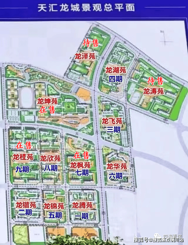 天汇龙城,总建面约450万方,分多十二期开发,目前七期龙枫苑有部分现房在售,主推九期龙桂苑和十期龙坤苑,还有2个地块待开发。