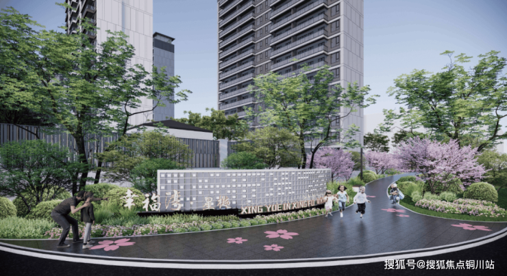 大门的口袋公园,将小区主入口与学校大门串联,铺出一条最美上学路,全程仅需3-5分钟,小孩上学开心、家长接送安心,并铺设阳光草坪、休息会客伞座、雕塑小景,与城市公园形成视觉延伸。