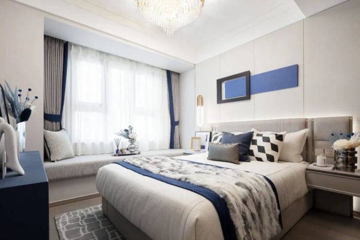 110㎡户型打造了三室两厅两卫,两个南向卧室都带飘窗,中间镶嵌着大横厅外接阳台,把视野优势利用到了最大化,主卧自带一个步入式衣帽间,妥妥是豪宅般的享受。