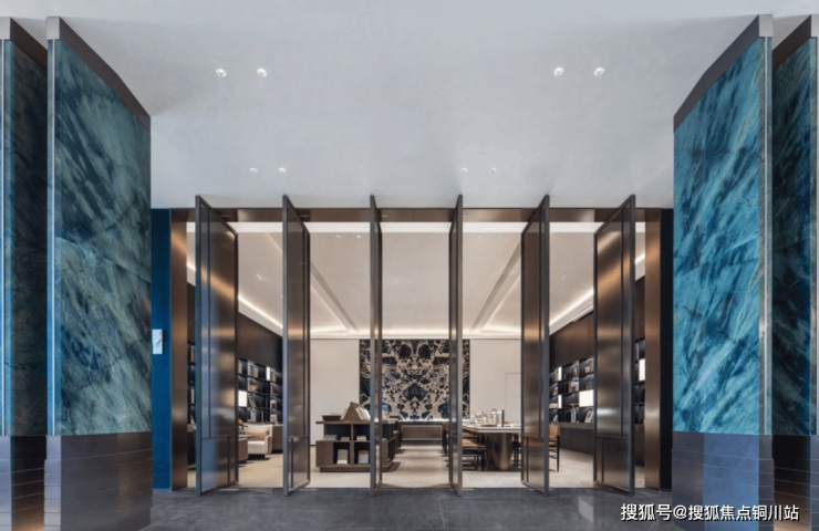 目之所及处,皆是意大利普拉达绿奢石。富有层次感的氛围灯零星点缀,和安哥拉黑石材的地面,形成强烈对比,雅奢调性十足。