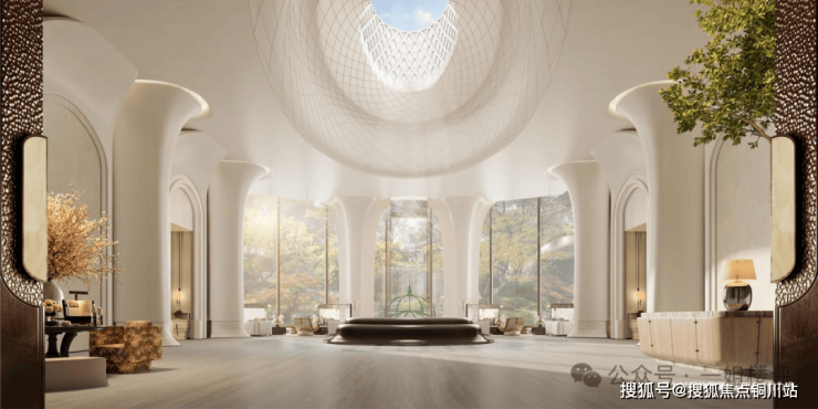 约300㎡的水晶玻璃穹顶花房,如同一座悬浮的透明绿洲,将天光云影垂直引入生活。环绕其侧的恒温泳池、女王吧、瑜伽室、SPA馆,让下楼即享星级酒店般的度假体验成为日常。