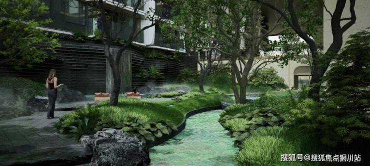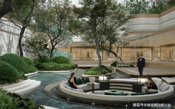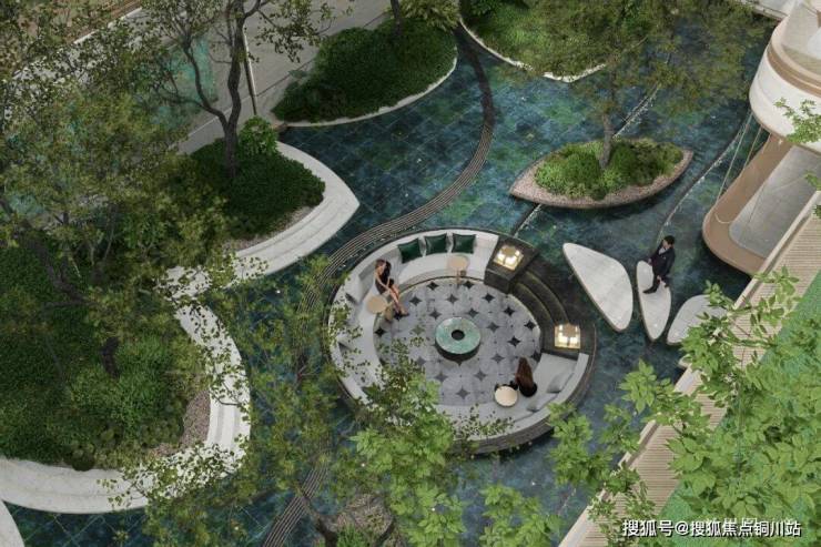 项目景观采用架空设计,抬高约5.3米,部分楼座还设有下沉庭院。