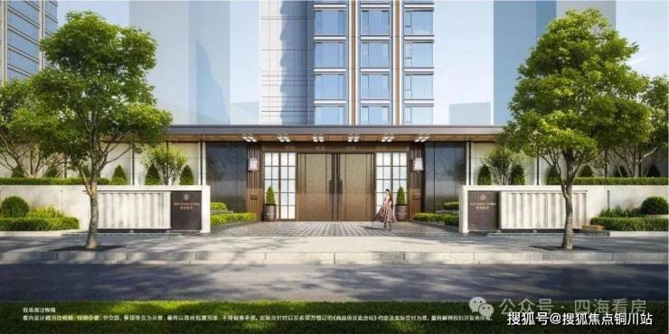 经典三段式建筑肌理,采用类公建大面积玻璃幕墙,搭配金属铝板和真石漆涂料,顶部采用雅奢鎏金塔冠造型,构筑公馆美学建筑立面。
