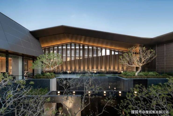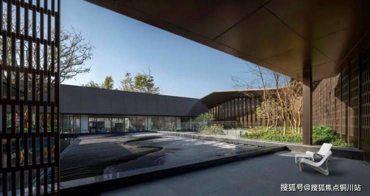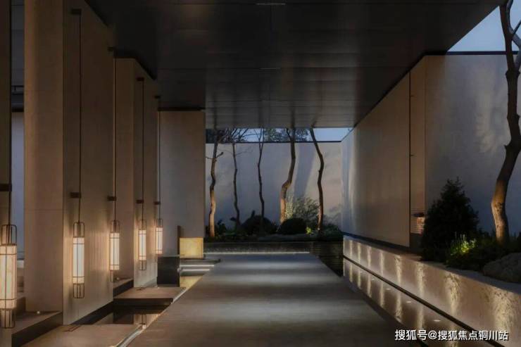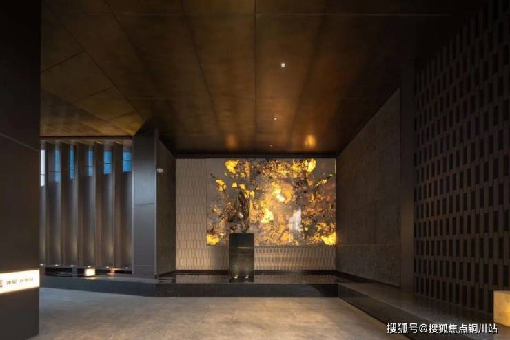 山石:沿阶而下,便步入约340㎡的下沉庭院。4m高的静水流瀑轻垂而下,与叠石、卡座形成材质与形态的诗意交织,呼应着“静潭观鱼”的生动意趣。在此,潺潺水声隐约可闻,营造出一处可听、可触、可感的沉浸式森境。