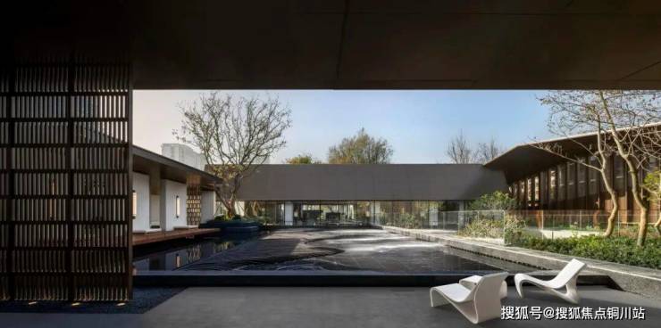 静潭:近400㎡的镜面水院,宛如一块嵌入地面的墨玉。水面极致平静,完整倒映天光云影、乌桕疏姿与建筑轮廓。它不语,却将天地万象尽收其中,营造出宋画般的空灵意境,成为归家后的第一重精神栖所。