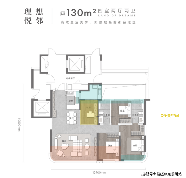 我们认为, 真正的理想户型,不应是 “刚刚好”的当下满足,而应是“足够好”的未来远见。它应该像一个有生命力的容器,能随着家庭一同成长。武汉 ·理想之地,正是为解决这一根本矛盾,带来了建面约130㎡3+X房两厅两卫的 “全生命周期作品”。