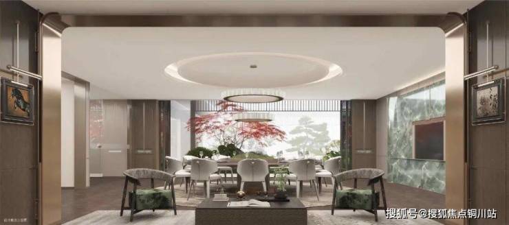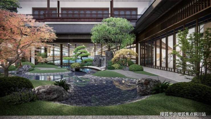 另一方面,没有忽视内部园林,以“一环五庭三坊七巷”的格局,隐合东方礼序,带来移步异景的林阵景观,形成了宅中有园,园中有屋,屋中有庭,庭外为坊,坊间成园的意境。