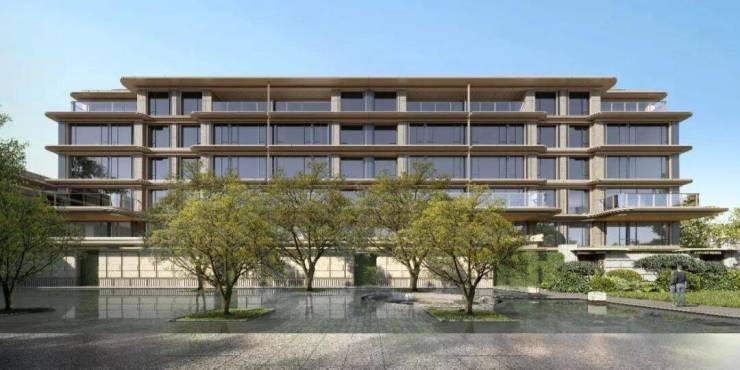 同循 “现代东方” 底色,锚定 “低密隐奢” 特质:以舒展弧面挑檐呼应高层韵律,将中式檐角意象转化为更柔化的曲线形态。
