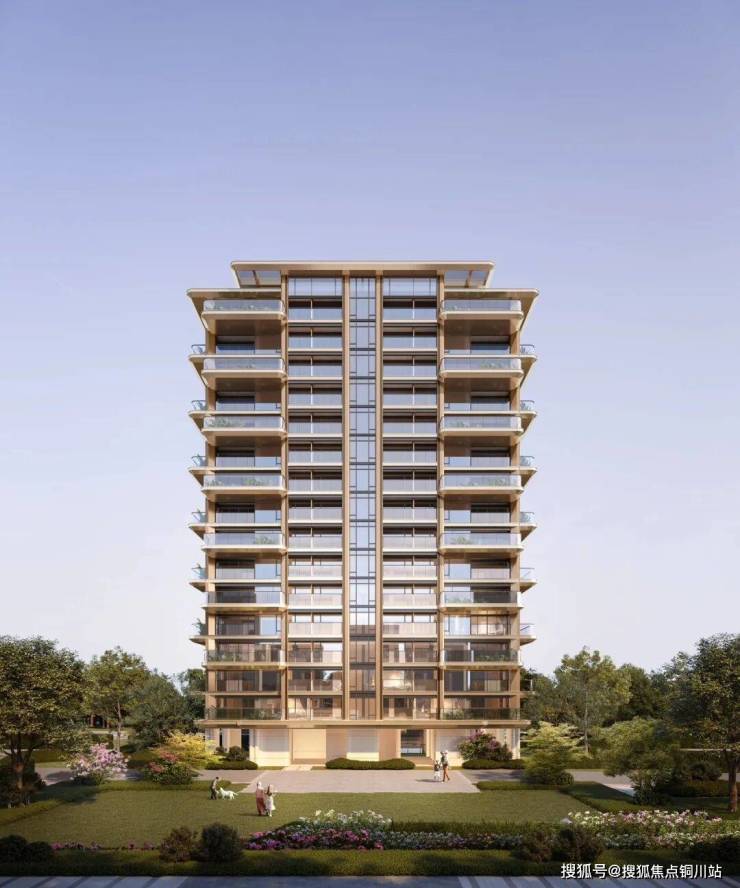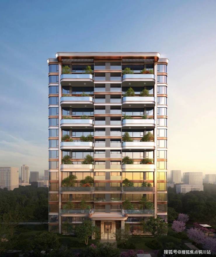 • 立面:金色铝板(高层)+石材(叠墅)