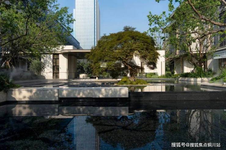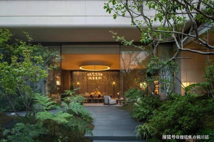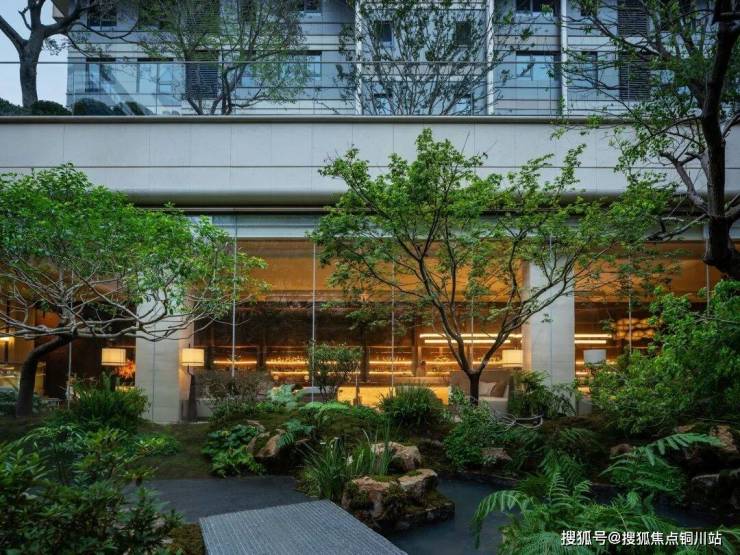 以阿丽拉酒店为蓝本,招商序打造了下沉式庭院会所,创新性地将苏式内在审美注入室内外的链接关系,让绿意自然下沉,成为社区视线中心。
