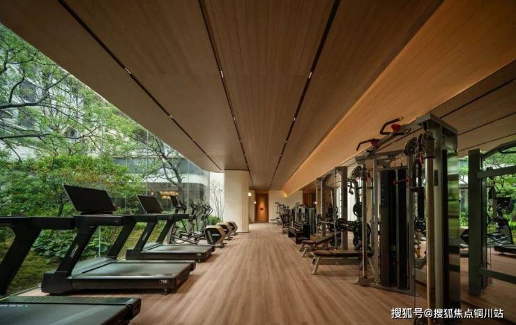 并在下沉式的景观庭院里打造独特的生态盒子,细分为浅酌酒廊 | 叁肆餐厅 | 升温健身房 | 畅叙会客厅等四大功能空间。