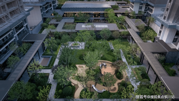 建筑与庭院空间疏密结合,旷奥兼备,漫步于社区中,享受“园中有院,院中有园“的诗意归家体验。