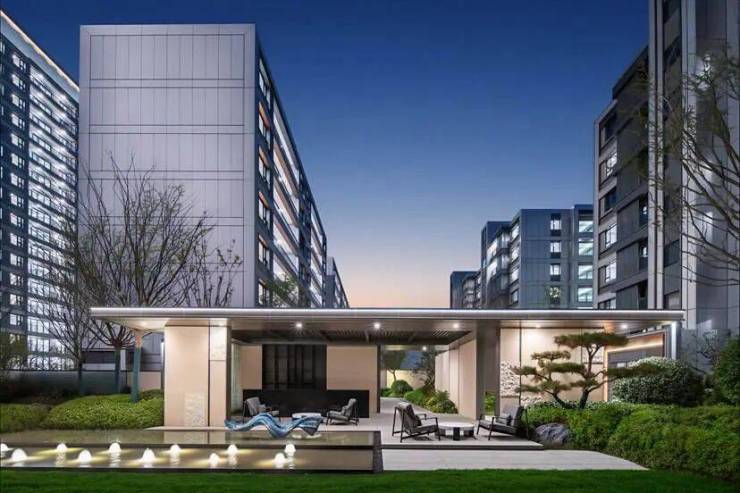 项目景观以“隐逸”为哲学,强调与自然的共生。中央景观区通过地形塑造、名贵松柏点缀及多层次植物组团,营造出富有深度的园林意境。