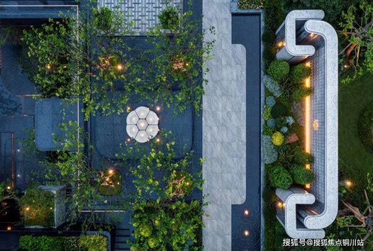 营宅造园,将山水意趣纳入居住日常;游园归家,即是东方诗意栖居的理想之境。沁百合庭院设计以千年“姑苏拙政园”为灵感,打造“一芯一轴双环”的园林体系,通过迎宾门庭、天光回廊、静谧水院与下沉庭院等多重庭院空间组织归家路径,柔化空间边界,减缓生活节奏,形成丰富、多元的生活场景与活动空间。