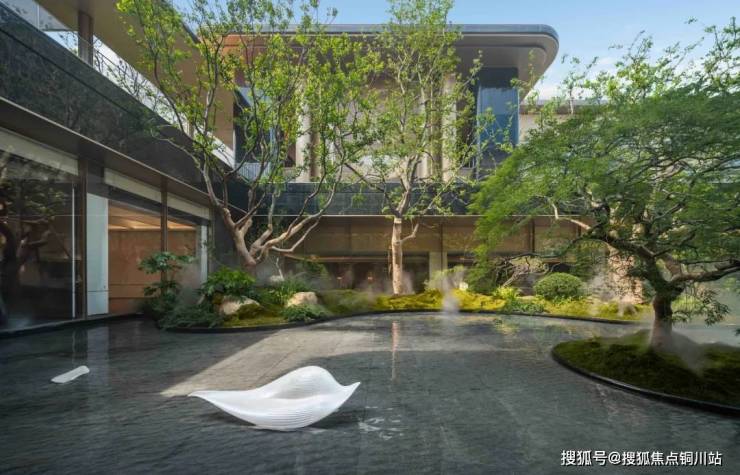 穿过回廊,行至地上庭院空间,但见一片静谧水院在眼前徐徐展开。疏林水清浅,草木凝香远,一朵“百合”宛立水中央,在人工与自然之间聚集人气,凝萃时光。