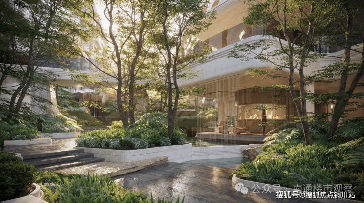 再到社区内部十二大缦系声景系统、超2600㎡超大体量下沉庭院,叠加双露台“空中花园”,由外到内多重过滤,尽享静奢。