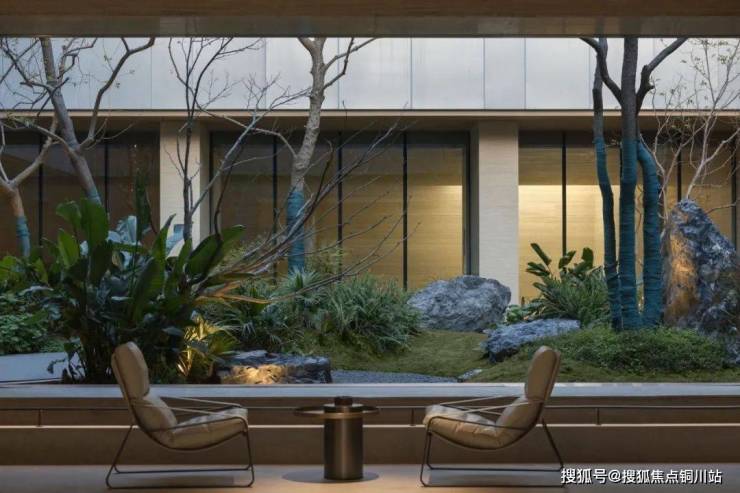中庭的叠水浮桥,是自然与匠心的共舞。水光潋滟间,金属树池溢出的清泉叮咚作响,艺术小品点缀其中,宛如星河坠入人间。向心的叠水层层递进,聚水成财,光影与流水的缠绵,为空间注入一抹东方雅韵的灵动。