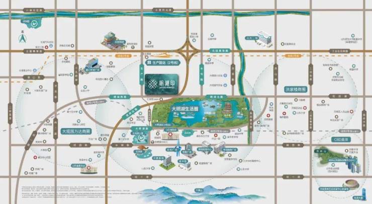 而且从区位上来看,大明湖南北两侧,明湖印在北畔,南畔则分布着各大省府机构,能与省府平分湖色,明湖印占据的黄金观湖坐标的稀缺性不言而喻。