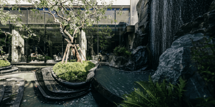 这次实景展示,明湖印的“烟波浮屿”下沉庭院提前亮相,巨石古树、悬瀑流水,一方下沉庭院,让整个小区充满了隐山入水的静谧感。