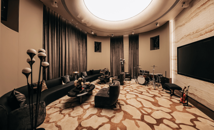 项目的“超配”理念,在约1500㎡的生活美学馆中体现得淋漓尽致。“荷影迎宾”的归家礼序、“墨香怡然”的银龄书屋、“星斗博弈”的桌球休闲、“画舫交盏”的风云会客厅……九大主题空间,覆盖全龄段家庭生活场景。