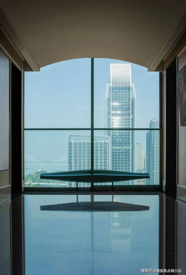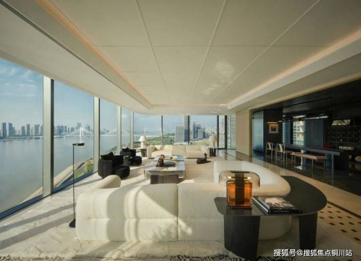 作为武汉首个半隐框纯玻璃幕墙商业大平层,以无柱式的设计语言来处理转角,得以让居者目之所及“无止景”。加之大面积外墙面设计,让每一户拥有270度景观视野。