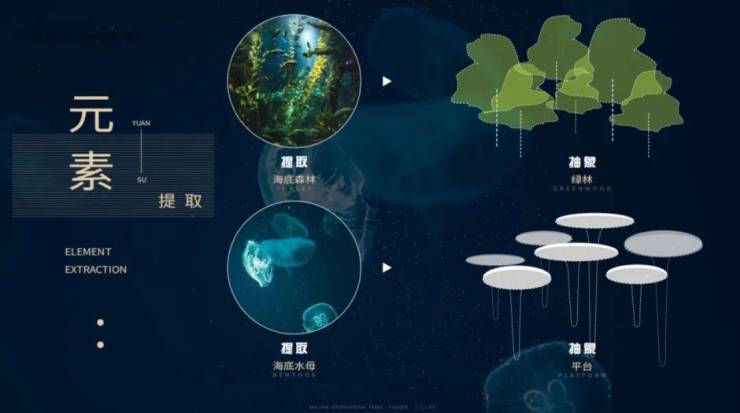 其根据「海上森屿」,对园林的各空间进行平面落位,形成微波花园、阳光岛屿、波澜海面等的景观功能区。