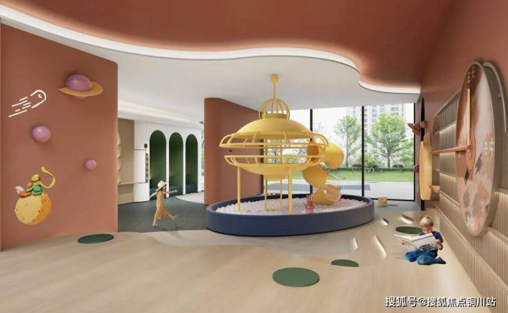 约500平的儿童主题乐园,格子主题的造型感、橙色主题的色调装饰,还有滑梯、攀爬架等功能设备的趣味性,每一点都充分考虑到了孩子们的需求和喜好。