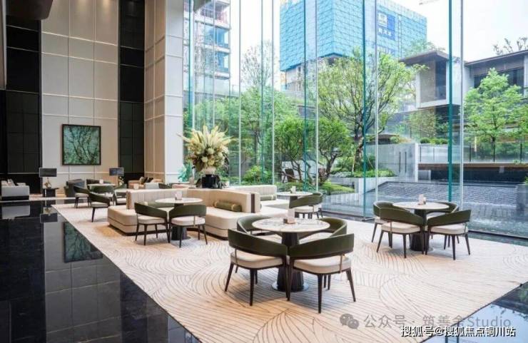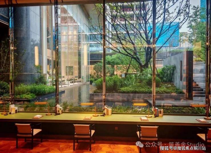 打造超配下沉式庭院,约900㎡灵动水景园林,于繁华都市中心,独享一方静谧水岸自然天地。近10米的高差被巧妙利用,水景与层叠绿植错落有致,点缀其间。超大的落地窗与水系共同构筑了一个绝佳的观景平台,打卡相当不错。