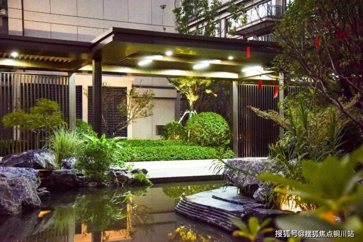 置身于会客厅,观潺潺流水,浑然沉浸于山水之间;或漫步于曲径通幽的入户园路,目光所及之处树种丰富、层次错落。科学搭配的树植组团,形成功能性与视觉性兼顾的宅间主题空间,让人沉浸于“深林人不知,明月来相照”的山林隐生活,回归空间的本质,创造返璞归真的美。