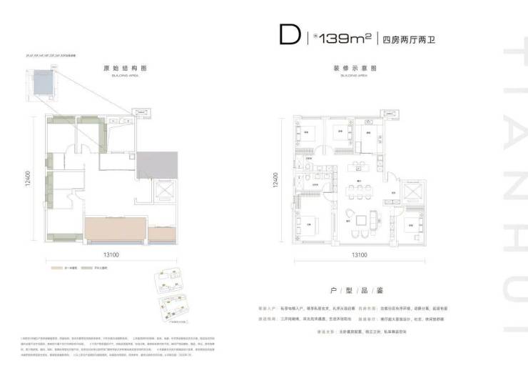 建面约139㎡,四房两厅两卫。