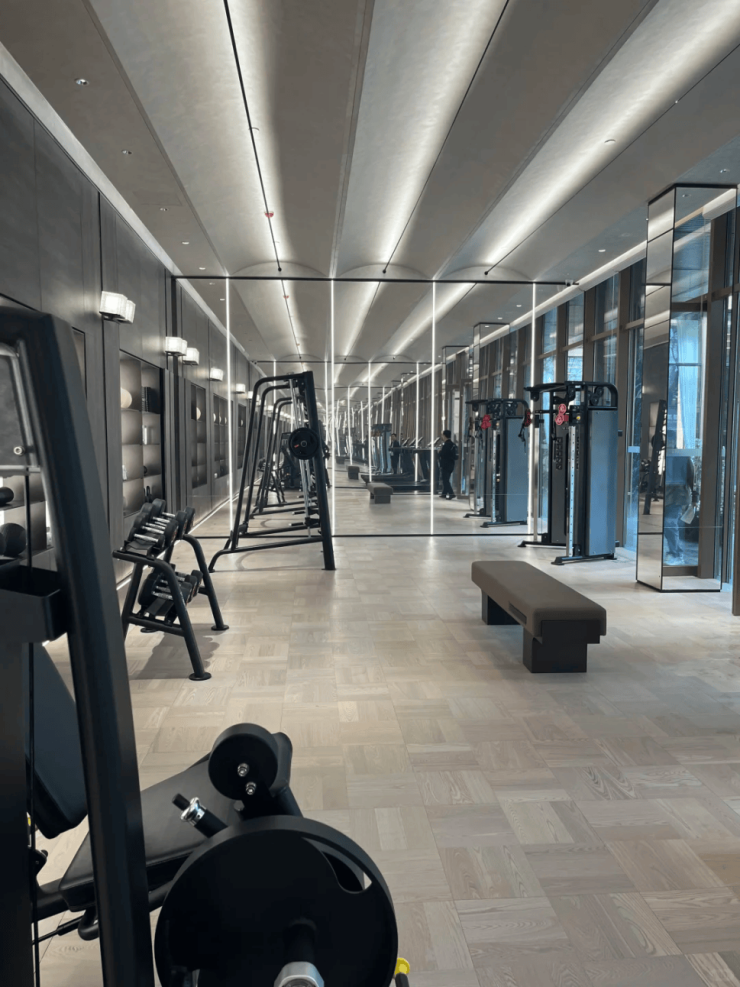 会所部分,有可供接待亲朋好友的会客沙龙,还有健身区,占地面积也很大,器材一应俱全,在自家楼下就可以撸铁。