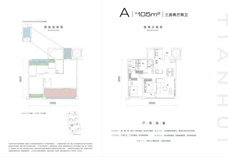 建面约105㎡,三房两厅两卫。
